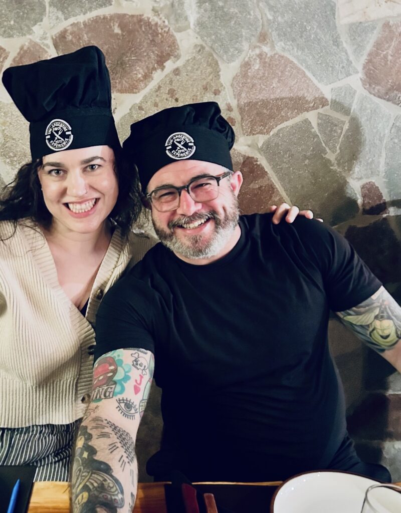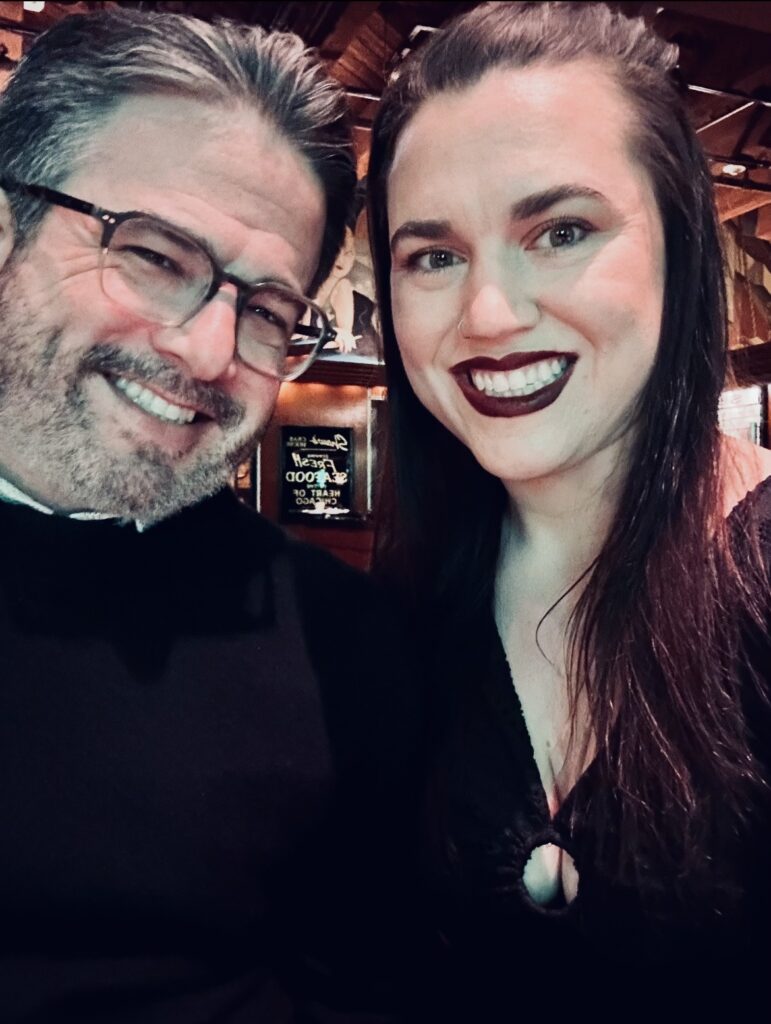 As an interfaith couple, the pair says that their “independently developed, idiosyncratic spiritualities” really complement each other. “I was raised Catholic, but I left Catholicism and branched out on my own spirituality in my early 20s,” Lana explains. “I started practicing yoga nidra, and it really spun out from there. I am drawn to yogic philosophy, I sometimes attend a Buddhist sangha, and I’ve gone to UU [Unitarian Universalist] meetings. So, my spirituality is not really defined into one thing yet – I love studying all of it.”